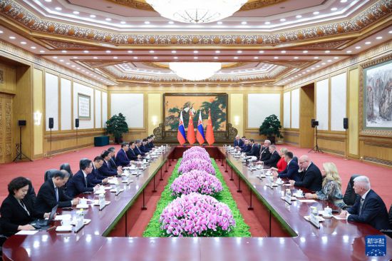 11月1日下午,国家主席习近平在北京人民大会堂会见来华进行正式访问的斯洛伐克总理菲佐。新华社记者 刘彬 摄