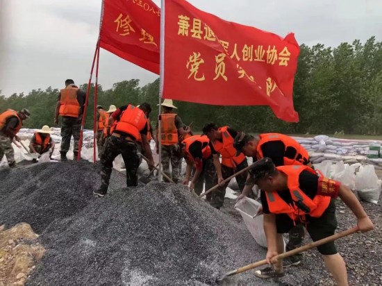 2020年7月,萧县退役军人创业协会党员突击队在江西九江抢修大堤。