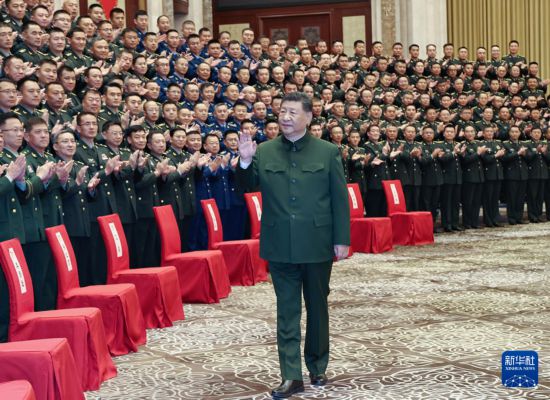 当天下午,习近平亲切接见了驻乌鲁木齐部队上校以上领导干部和部分基层先进模范、文职人员,代表党中央和中央军委向驻新疆部队全体官兵致以诚挚问候,并同大家合影留念。