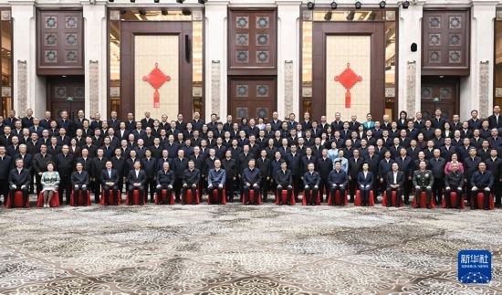 9月23日下午,中共中央总书记、国家主席、中央军委主席习近平在乌鲁木齐亲切接见新疆生产建设兵团领导班子成员及有关方面负责同志,并同大家合影留念。新华社记者 申宏 摄