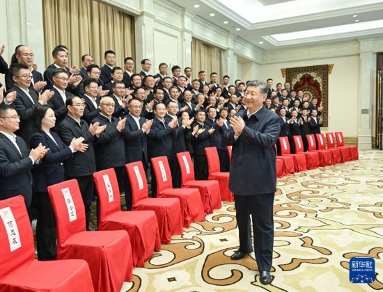 习近平等来到接见现场时,全场响起长时间热烈掌声。习近平向大家挥手致意,不时同代表亲切交流,并同大家合影留念。
