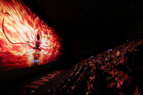 2025年2月25日,观众在贵州省贵阳越界影城IMAX影厅内观看电影《哪吒2》。新华社记者 欧东衢 摄