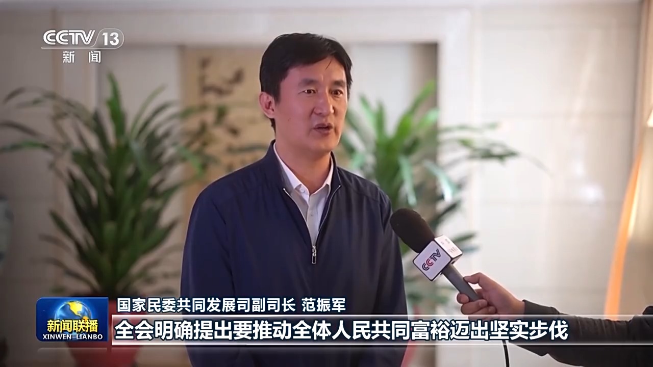 国家民委共同发展司副司长 范振军:全会明确提出要推动全体人民共同富裕迈出坚实步伐,为推动各民族共同走向社会主义现代化指明了前进方向。我们将牢牢扭住铸牢中华民族共同体意识、推进中华民族共同体建设这一重大战略任务,构筑中华民族共有精神家园,助力民族地区高质量发展。
