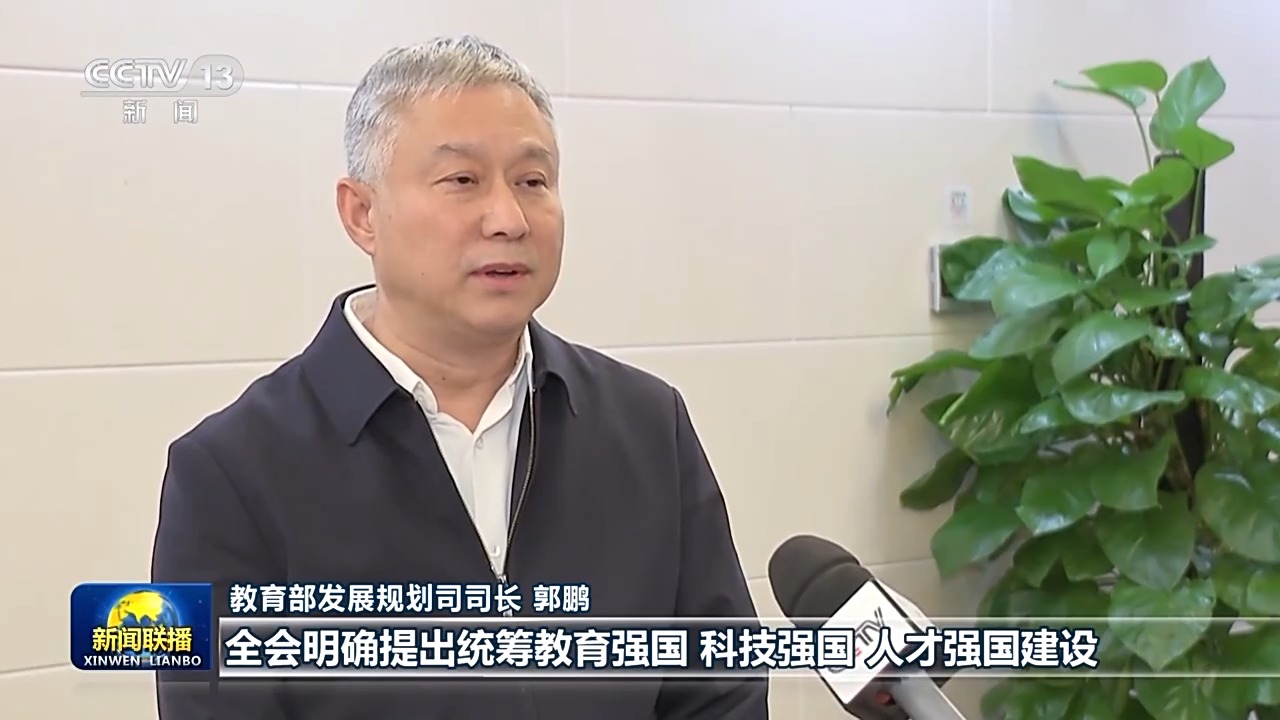 教育部发展规划司司长 郭鹏:全会明确提出统筹教育强国、科技强国、人才强国建设,对一体推进教育科技人才发展、办好人民满意的教育、促进人的全面发展作出了一系列新的部署,我们将深入学习领会全会精神,科学谋划好、扎实推进好未来五年的教育事业发展。